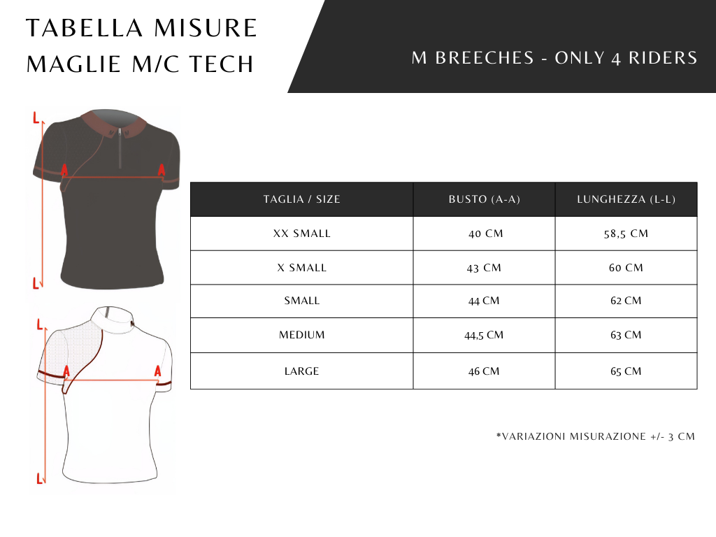 • Loghi ricamati su colletto e dettagli a contrasto che richiamano l’identità M Breeches, per un risultato tecnico ma curato.